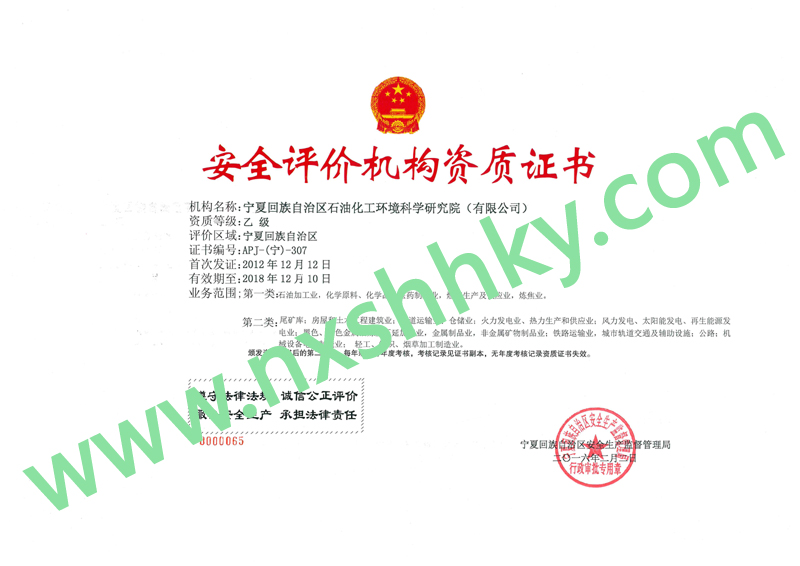 安全評(píng)價(jià)機(jī)構(gòu)資質(zhì)證書