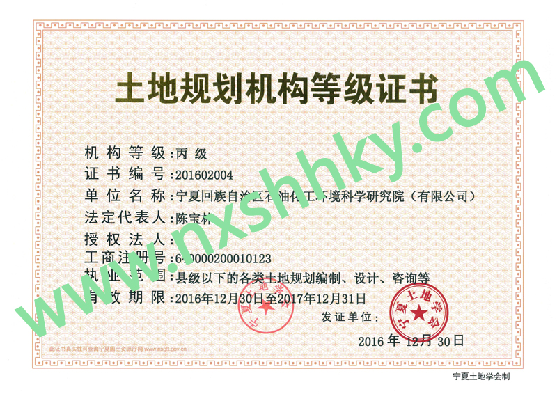 土地規(guī)劃機(jī)構(gòu)等級(jí)證書